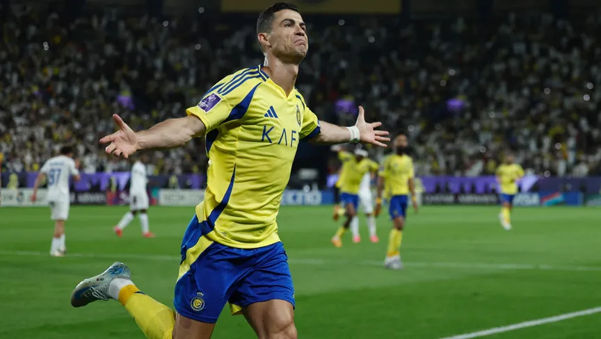 كريستيانو رونالدو يحتفل بتسجيله هدفاً للنصر في مرمى استقلال طهران بدوري أبطال آسيا للنخبة - 10 مارس 2025 - Reuters