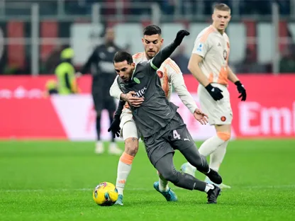 إسماعيل بن ناصر لاعب ميلان في صراع على الكرة مع لورينزو بلغريني لاعب روما - 29 ديسمبر 2024 - Reuters