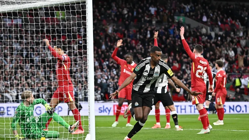 ألكسندر إيزاك لاعب نيوكاسل يحتفل بالهدف الثاني في مرمى ليفربول - 16 مارس 2025 - Reuters