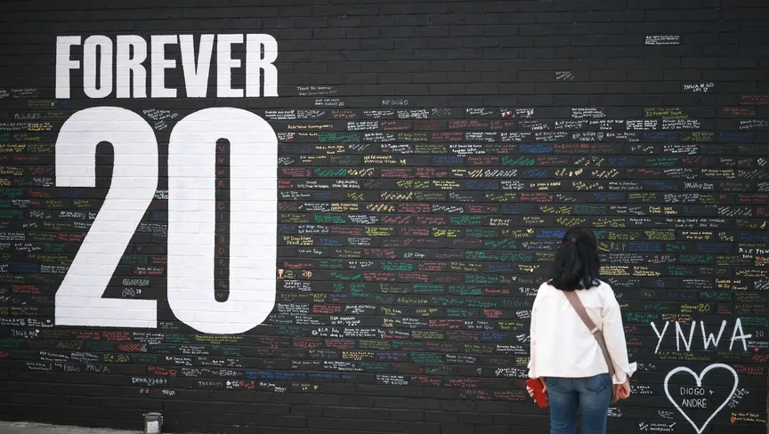 وُضعت آلاف الزهور والأوشحة واللافتات وتذكارات أخرى خارج ملعب "أنفيلد"، منذ وفاة جوتا وشقيقه أندريه سيلفا.