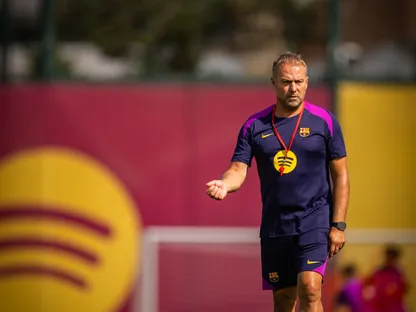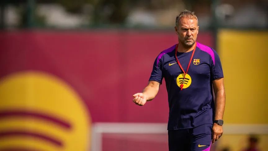 هانزي فليك خلال تدريب لبرشلونة - 22 يوليو 2025 - X/@FCBarcelona