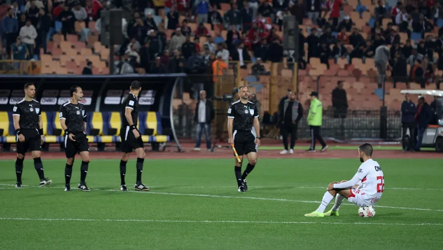 حكم مباراة الأهلي والزمالك أثناء انتظار حضور لاعبي الأهلي - 11 مارس 2025 - Reuters