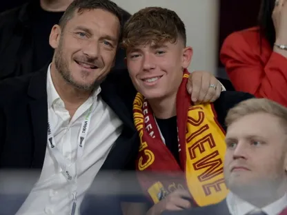كريستيان توتي في صورة مع والده فرانشيسكو توتي أسطورة روما - - X/@HuffPostItalia