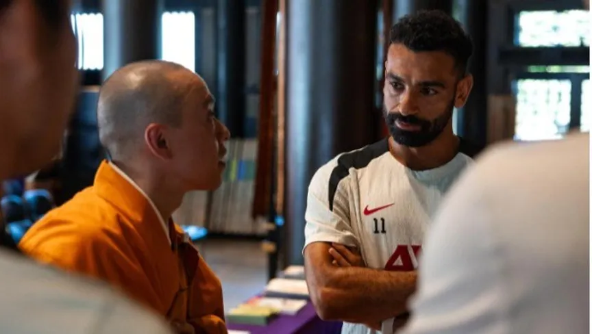 زار محمد صلاح، وباقي زملائه في فريق ليفربول، معبد إيكوين في اليابان من أجل الحصول على "جلسة تأمل" خلال استعدادات الفريق للموسم الجديد 2025-2026.