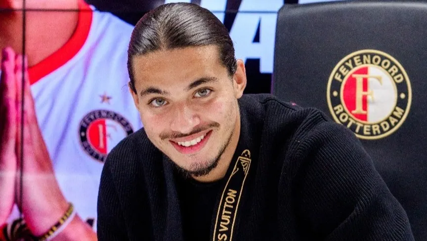 الجزائري أنيس حاج موسى خلال توقيعه على العقد الجديد مع فينورد الهولندي - 31 يوليو 2025 - X/@Feyenoord
