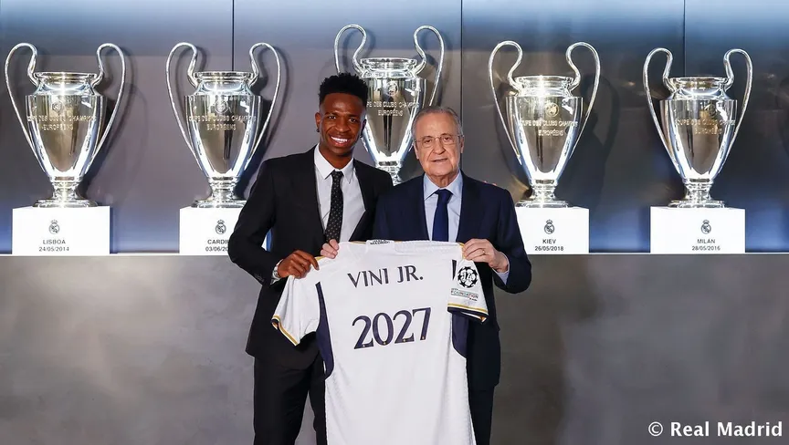 وتشير تكهنات صحفية إلى رغبة فينيسيوس في الحصول على أعلى راتب بالفريق، متخطياً زميله كيليان مبابي، بينما ترفض كسر سقف الرواتب، لذا توقفت المفاوضات حالياً، علماً بأن عقده ينتهي في 2027.