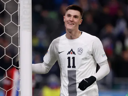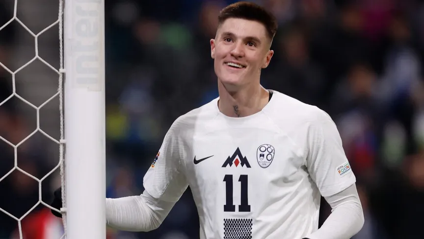 بنجامين سيسكو مهاجم سلوفينيا خلال مواجهة النرويج بدوري الأمم الأوروبية - 14 نوفمبر 2024 - Reuters