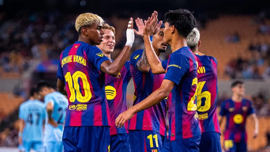 احتفال لاعبي برشلونة بالفوز على دايغو الكوري الجنوبي - 4 أغسطس 2025 - X/FCBarcelona_es