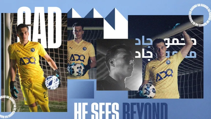 نشر بيراميدز عبر حسابه الرسمي على فيسبوك مقطع فيديو مثير لتقديم الحارس البالغ عمره 26 عاماً. ومع أصوات أمطارٍ غزيرة ورعدٍ تردد في الخلفية صوت يقول: "القوة لا تأتي مما تراه. بعض المحاربين يقاتلون بالغريزة لا بالبصر. بعضهم يختار الظلام ويُتقنه".
