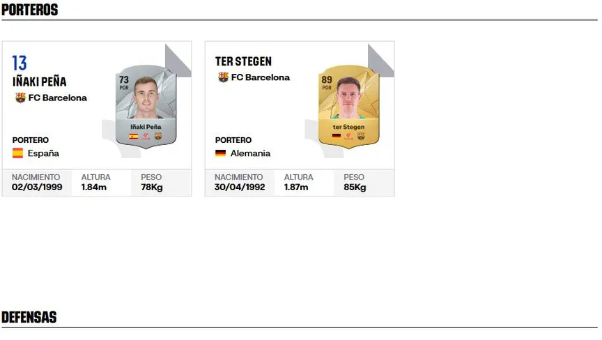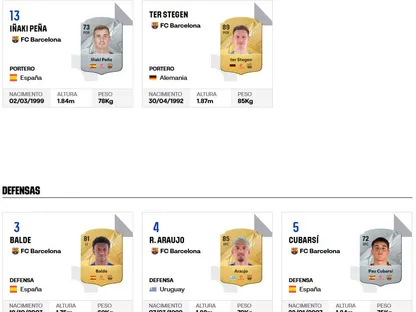 كما أن جيرارد مارتن ومارك برنال لا يظهران كلاعبين في الفريق الأول بالقائمة، علماً أن برشلونة تعهّد بمنحهما رقمين لدى تجديد عقديهما.