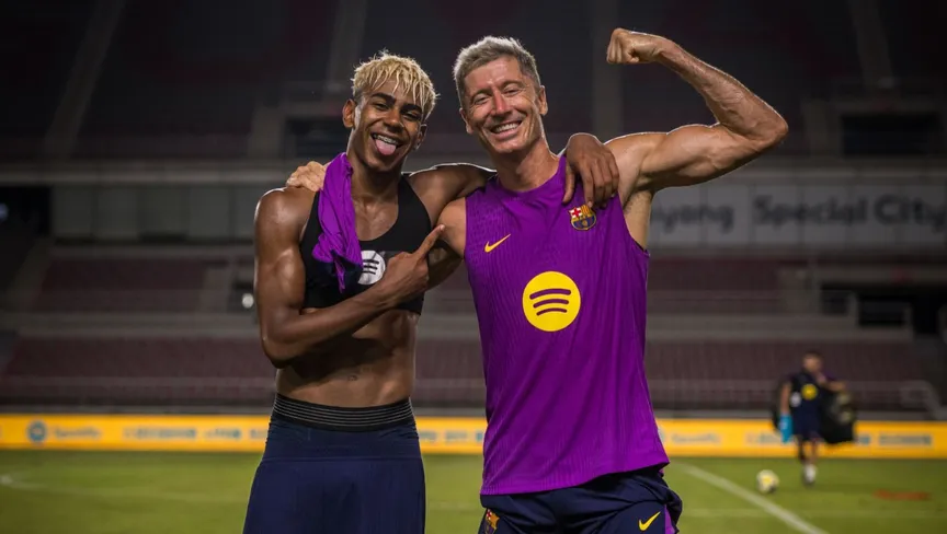 أظهرت العديد من الصور والمقاطع خلال فترة الإعداد للموسم الجديد علاقة خاصة بين ليفاندوفسكي ولامين يامال صاحب الـ18 عاماً.