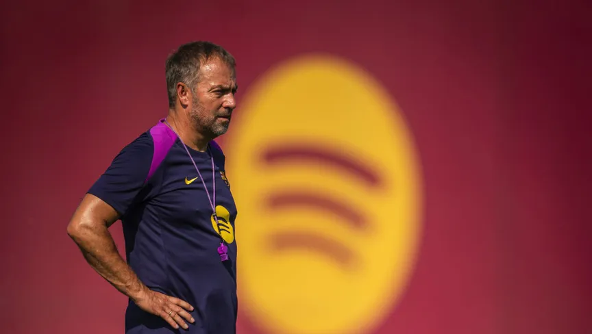 هانزي فليك خلال تدريب لبرشلونة - 15 أغسطس 2025 - X/@FCBarcelona_es