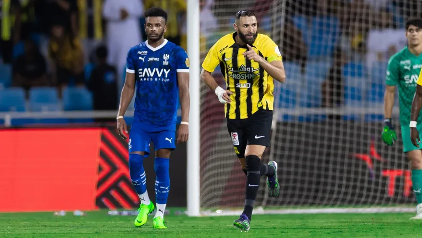 علي البليهي مدافع الهلال (يسار الصورة) خلال مباراة الاتحاد في دوري روشن السعودي - 21 سبتمبر 2024 - X/@SPL