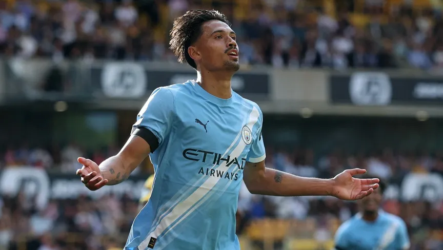 تيجاني ريندرز يحتفل بهدفه في مباراة مانشستر سيتي وولفرهامبتون - 16 أغسطس 2025 - Reuters