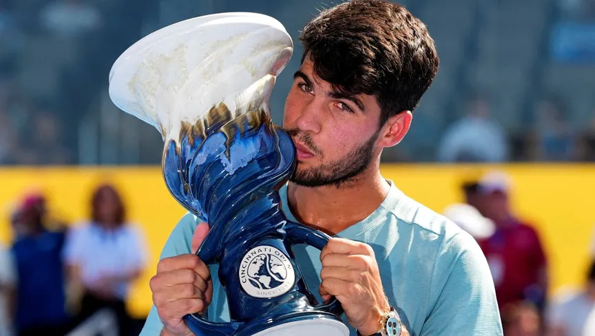 اكتفى نجم التنس الإسباني كارلوس ألكاراز بالفوز بلقب بطولة سينسيناتي المفتوحة للماسترز دون الانتقام ورد الاعتبار من الإيطالي يانيك سينر الذي هزمه قبل شهر في نهائي بطولة ويمبلدون للغراند سلام.