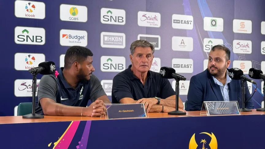 ميتشيل غونزاليس مدرب القادسية في المؤتمر الصحفي بعد مباراة نصف نهائي السوبر السعودي أمام الأهلي - 20 أغسطس 2025 - X/@aawsat_spt