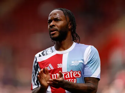 رحيم ستيرلينغ قبل مباراة أرسنال وساوثهامبتون بالدوري الإنجليزي الممتاز - 25 مايو 2025 - Reuters