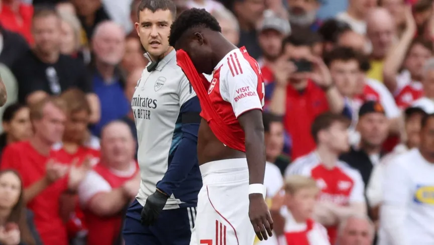 وبحسب الفحوصات الأولية تعرض ساكا لإصابة في أوتار الركبة اليسرى، ومن المحتمل أن يغيب لمدة أسبوعين عن الملاعب، بالتالي استبعاده من منتخب إنجلترا بالفترة الدولية، حاله حال أوديغارد.