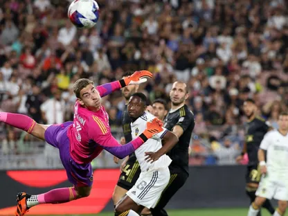 حارس مرمى لوس أنجلوس غالاكسي جوناثان كلينسمان خلال مواجهة لوس أنجلوس إف سي - 4 يوليو 2023 - Reuters