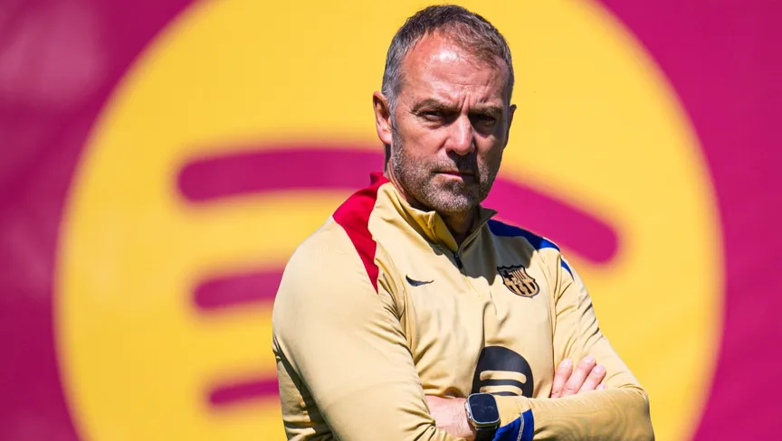 هانزي فليك مدرب برشلونة في التدريبات قبل مواجهة بلد الوليد في الدوري الإسباني - 2 مايو 2025 - X@FCBarcelona