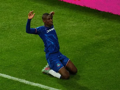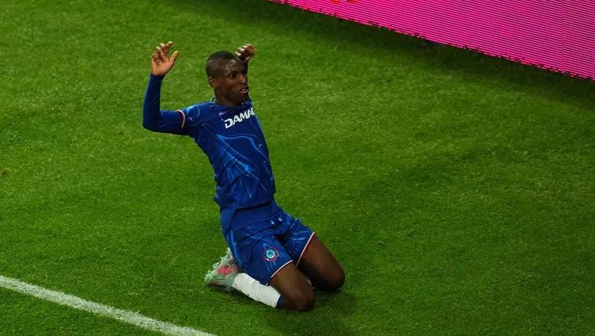نيكولاس جاكسون مهاجم تشيلسي يحتفل بهدفه في مرمى ريال بيتيس في نهائي دوري المؤتمر الأوروبي - 28 مايو 2025 - Reuters