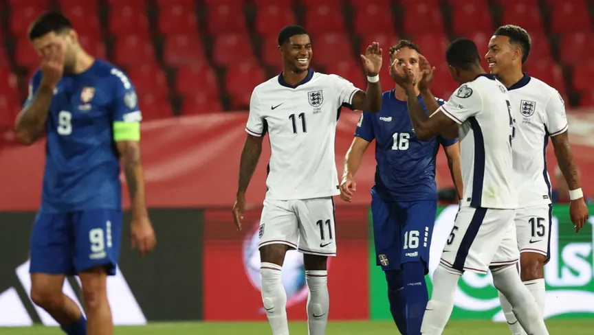 اكتسح منتخب إنجلترا مضيفه الصربي بنتيجة 5-0، اليوم الثلاثاء، في العاصمة الصربية بلغراد، ضمن الجولة الخامسة من تصفيات أوروبا المؤهلة إلى كأس العالم 2026.