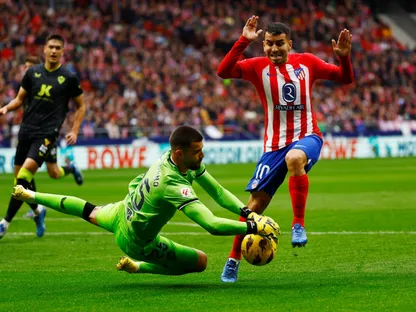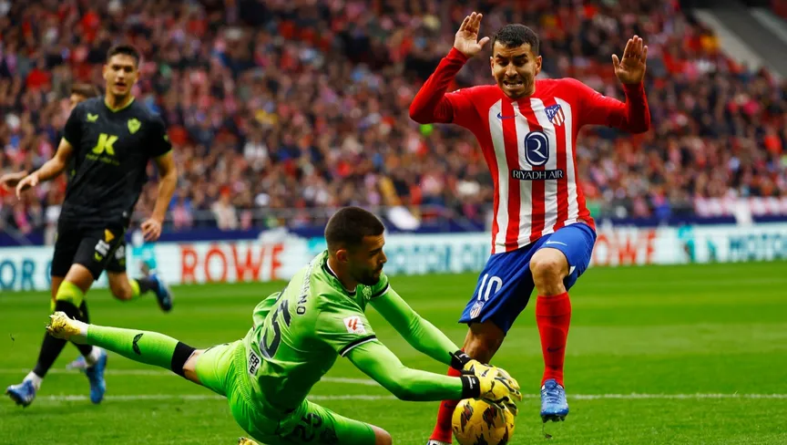 حارس ألميريا لويس ماكسيميانو ينقذ فريقه من هجمة لفريق أتلتيكو مدريد في الدوري الإسباني - 10 ديسمبر 2023 - Reuters