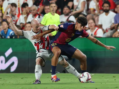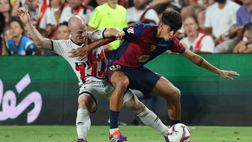 مارك بيرنال خلال مباراة برشلونة ورايو فاييكانو في الدوري الإسباني - 27 اغسطس 2024 - REUTERS