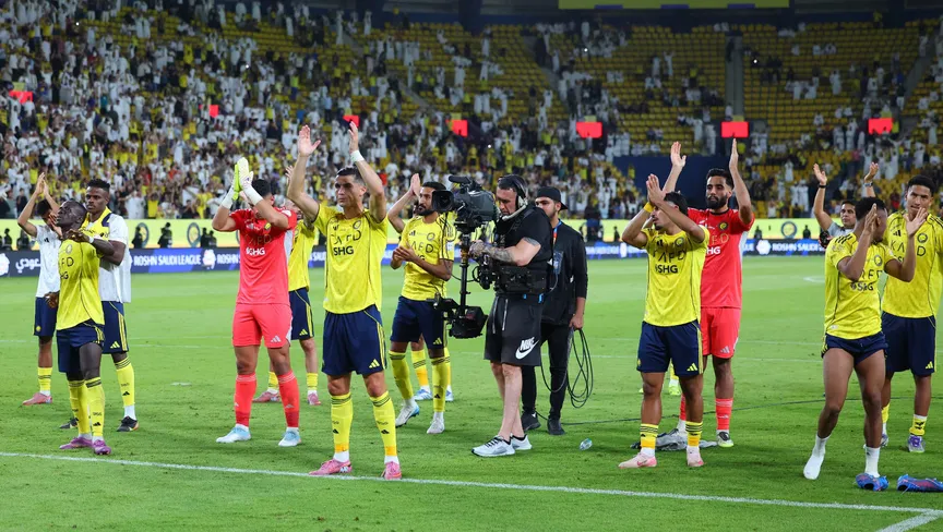 كريستيانو رونالدو ولاعبون من النصر يحيّون الجمهور بعد الفوز على الخلود بالدوري السعودي - 14 سبتمبر 2025 - X/@AlNassrFC