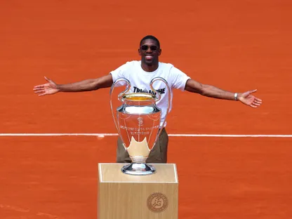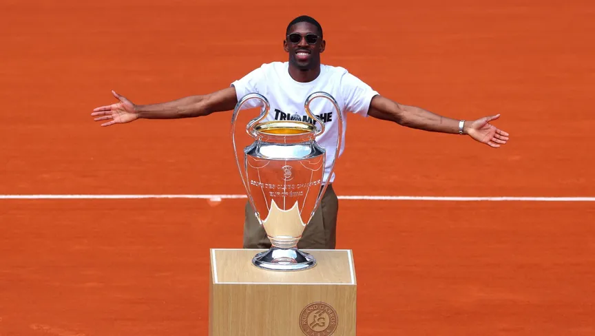 عثمان ديمبيلي يقدّم كأس دوري أبطال أوروبا التي أحرزها باريس سان جيرمان للجمهور في ملعب "فيليب شاترييه" برولان غاروس للتنس - 2 يونيو 2025 - Reuters
