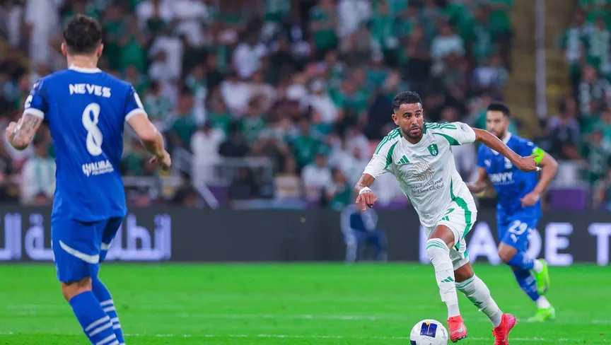 رياض محرز خلال مباراة بين الأهلي والهلال في نصف نهائي دوري أبطال آسيا للنخبة بجدة - 20 أبريل 2025 - X/@ALAHLI_FC