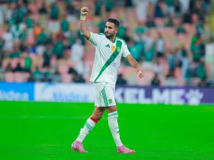 احتفال رياض محرز نجم الأهلي بتسجيل هدف في مرمى ناساف الأوزبكي بدوري أبطال آسيا للنخبة - 15 سبتمبر 2025 - X/@ALAHLI_FC