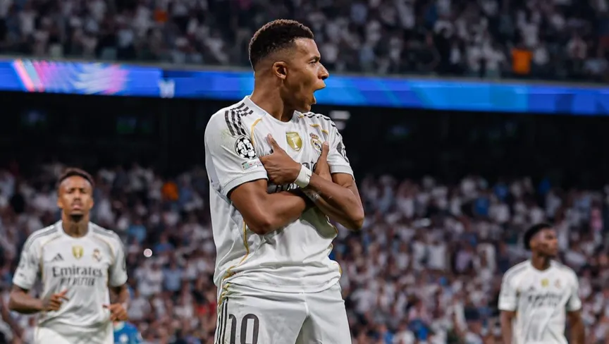 كيليان مبابي مهاجم ريال مدريد يحتفل بهدفه الثاني في مرمى مارسيليا بدوري أبطال أوروبا - 16 سبتمبر 2025 - x/@realmadrid