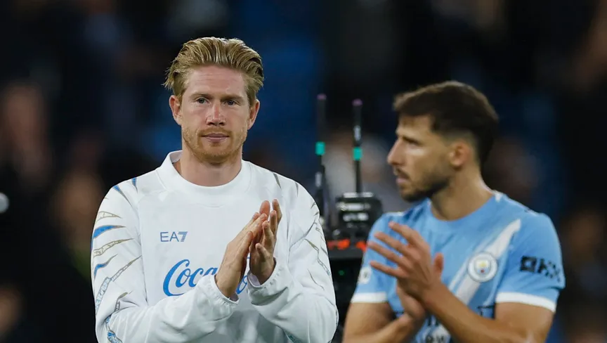 دي بروين (34 عاماً) الذي نال 16 لقباً خلال 10 سنوات من التألّق مع مانشستر سيتي، قبل أن ينتقل إلى إيطاليا بعد انتهاء عقده في يونيو الماضي، نال استقبالاً حاراً من جمهور سيتي.