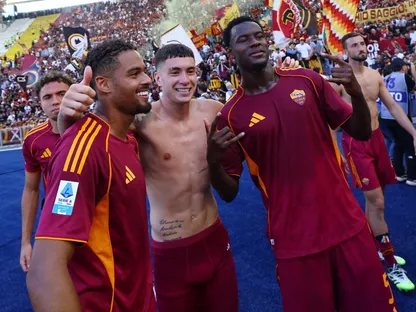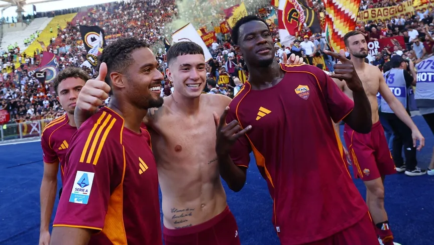 فرحة لاعبي روما بالفوز على لاتسيو في الديربي بالدوري الإيطالي - 21 سبتمبر 2025 - Reuters