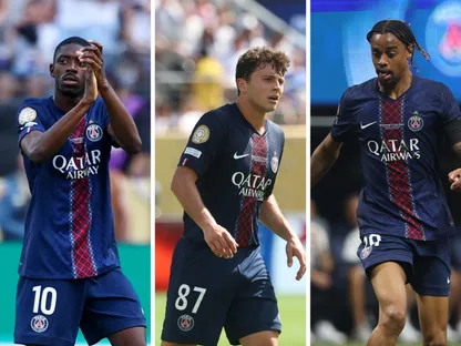 لاعبو باريس سان جيرمان برادلي باركولا وجواو نيفيز وعثمان ديمبيلي في صورة مُركبة - الشرق