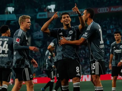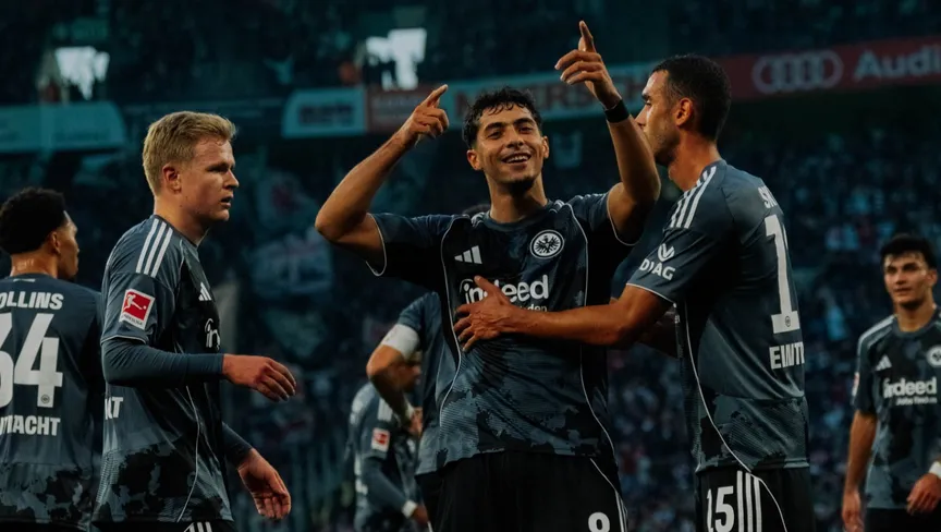فارس شايبي يحتفل بهدفه في مباراة آينتراخت فرانكفورت وبوروسيا مونشنغلادباخ بالدوري الألماني - 27 سبتمبر 2025 - X/Eintracht