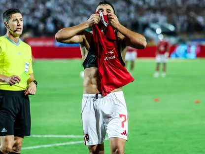 محمود حسن "تريزيغيه" لاعب الأهلي يحتفل بهدفه في مرمى الزمالك في الدوري المصري الممتاز - 29 سبتمبر 2025 - fb/Al Ahly