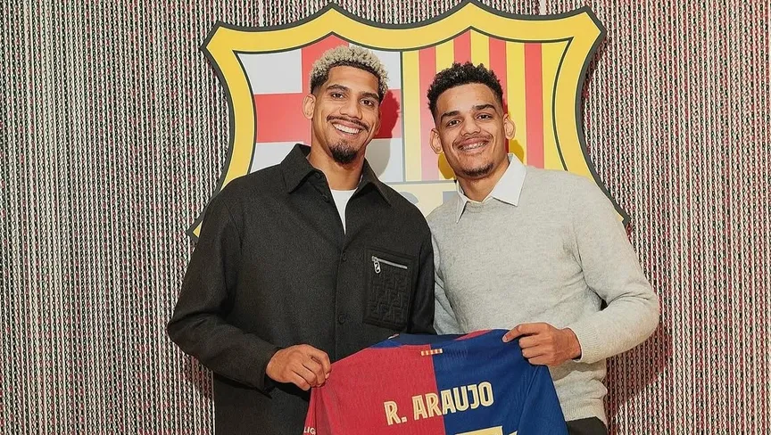 رونالد أراوخو وشقيقه رافاييل أثناء مراسم تجديد العقد مع برشلونة - 24 يناير 2025 - instagram - maikelaraujo_1