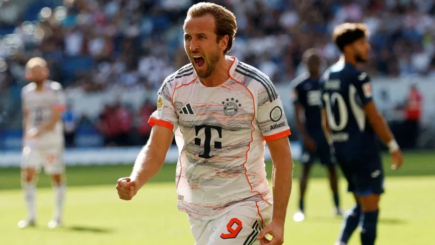 مهاجم بايرن ميونيخ هاري كين يحتفل بهدفه في مرمى هوفنهايم في الدوري الألماني - 20 سبتمبر 2025 - Reuters