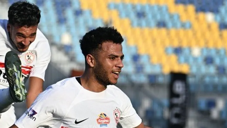 أحمد ربيع لاعب الزمالك يحتفل بالتسجيل ضد غزل المحلة - 4 أكتوبر 2025 - X/@epl_eg