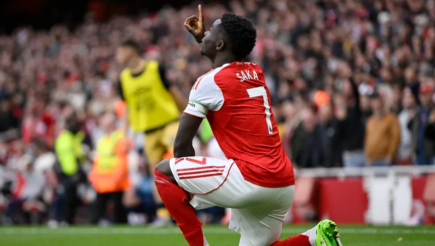 ووصل ساكا بذلك إلى 100 مساهمة في الدوري الإنجليزي، حيث سجل 55 هدفاً وصنع 45 هدفاً، بينما لا يزال عمره 24 عاماً، ما يجعله مرشحاً لتحطيم العديد من الأرقام المميزة مع أرسنال.
