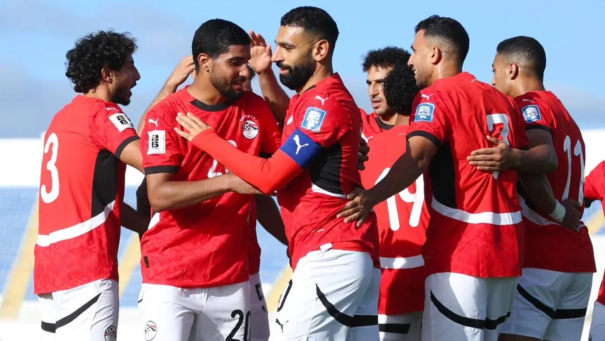 لاعبو مصر يحتفلون بالهدف الثاني أمام جيبوتي في تصفيات كأس العالم 2026 - 8 أكتوبر 2025 - FB/EFA