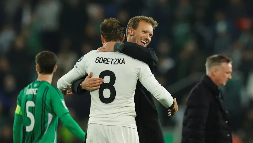 مدرب ألمانيا يوليان ناغلسمان وليون غوريتسكا بعد الفوز على إيرلندا الشمالية في تصفيات كأس العالم 2026 - 13 أكتوبر 2025 - REUTERS