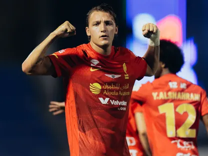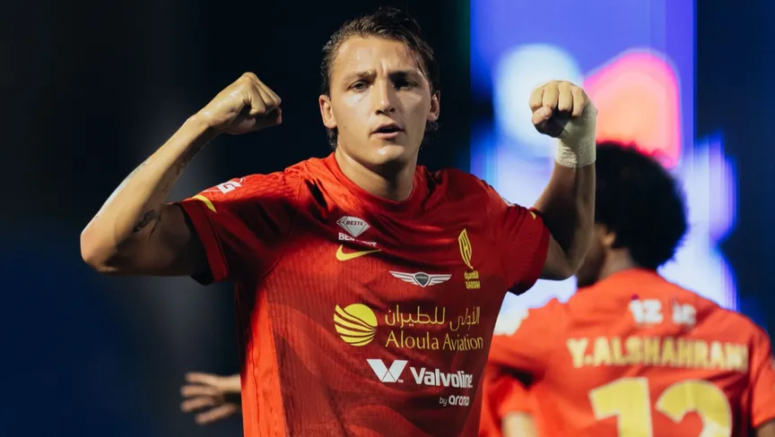 ماتيو ريتيغي لاعب القادسية يحتفل بهدفه في مرمى الخليج بدوري روشن السعودي - 19 سبتمبر 2025 - X/@Alqadsiah