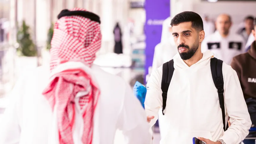 حسن الهيدوس أثناء وصوله مع نادي السد لمدينة الرياض قبل مواجهة الهلال بدوري أبطال آسيا للنخبة - 20 أكتوبر 2025 - X/AlsaddSC