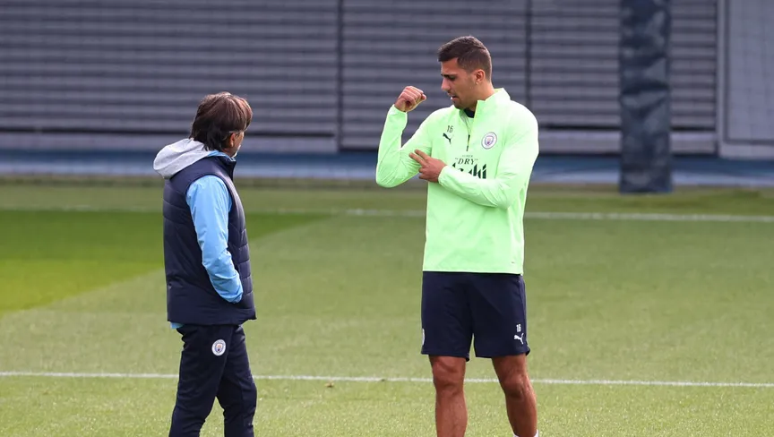 رودري خلال تدريب لمانشستر سيتي - 30 سبتمبر 2025 - Action Images via Reuters