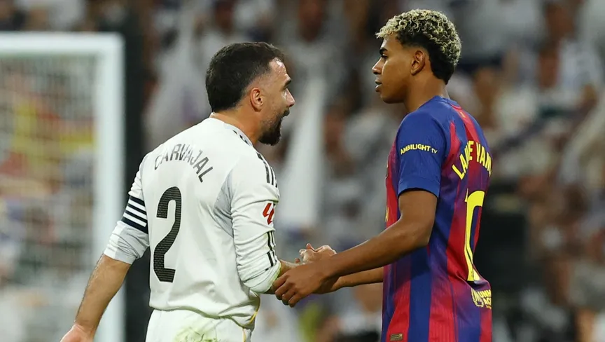 قائد ريال مدريد داني كارفاخال ولاعب برشلونة لامين يامال بعد مباراة الكلاسيكو في الدوري الإسباني - 26 أكتوبر 2025 - ٌReuters