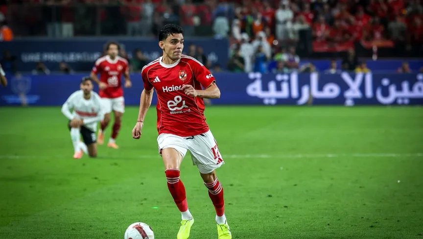 أشرف بن شرقي لاعب الأهلي خلال مواجهة الزمالك في نهائي كأس السوبر - 9 نوفمبر 2025 - X/@AlAhly