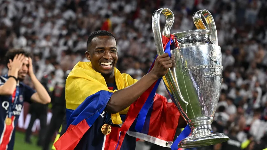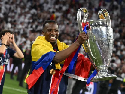 ويليان باتشو مدافع باريس سان جيرمان يحتفل بالفوز بدوري أبطال أوروبا - 31 مايو 2025 - Reuters